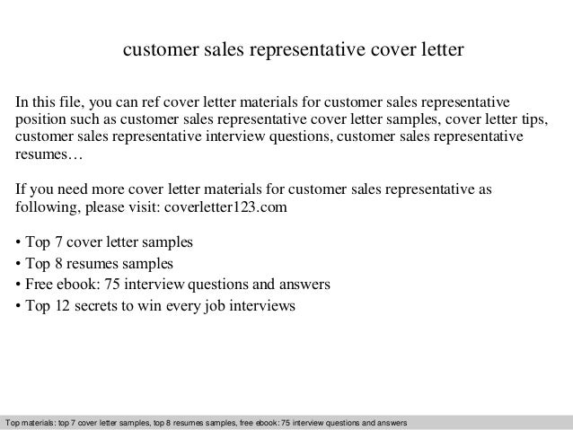 Customer Sales Representative Cover Letter